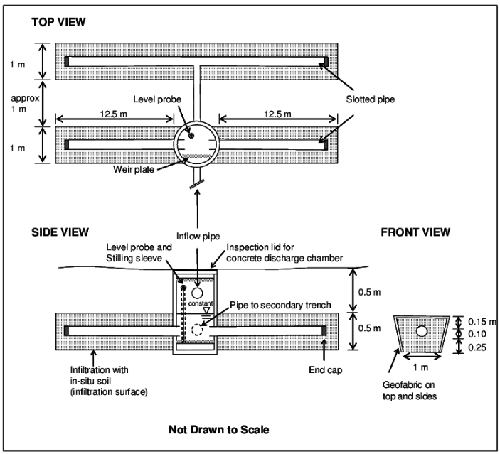 Typically, infiltration galleries consist of perforated pipes surrounded by gravel installed in an underground trench. Their effectiveness depends on soil permeability and requires adequate space for proper installation. Curragh Engineers can assess your property and design an infiltration system tailored to your site conditions, ensuring optimal performance and safety.